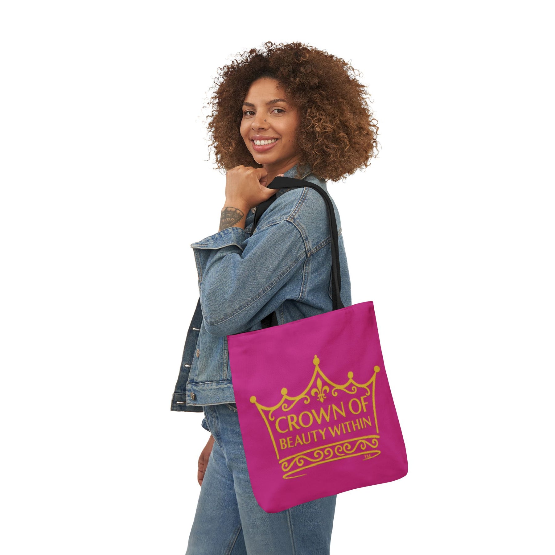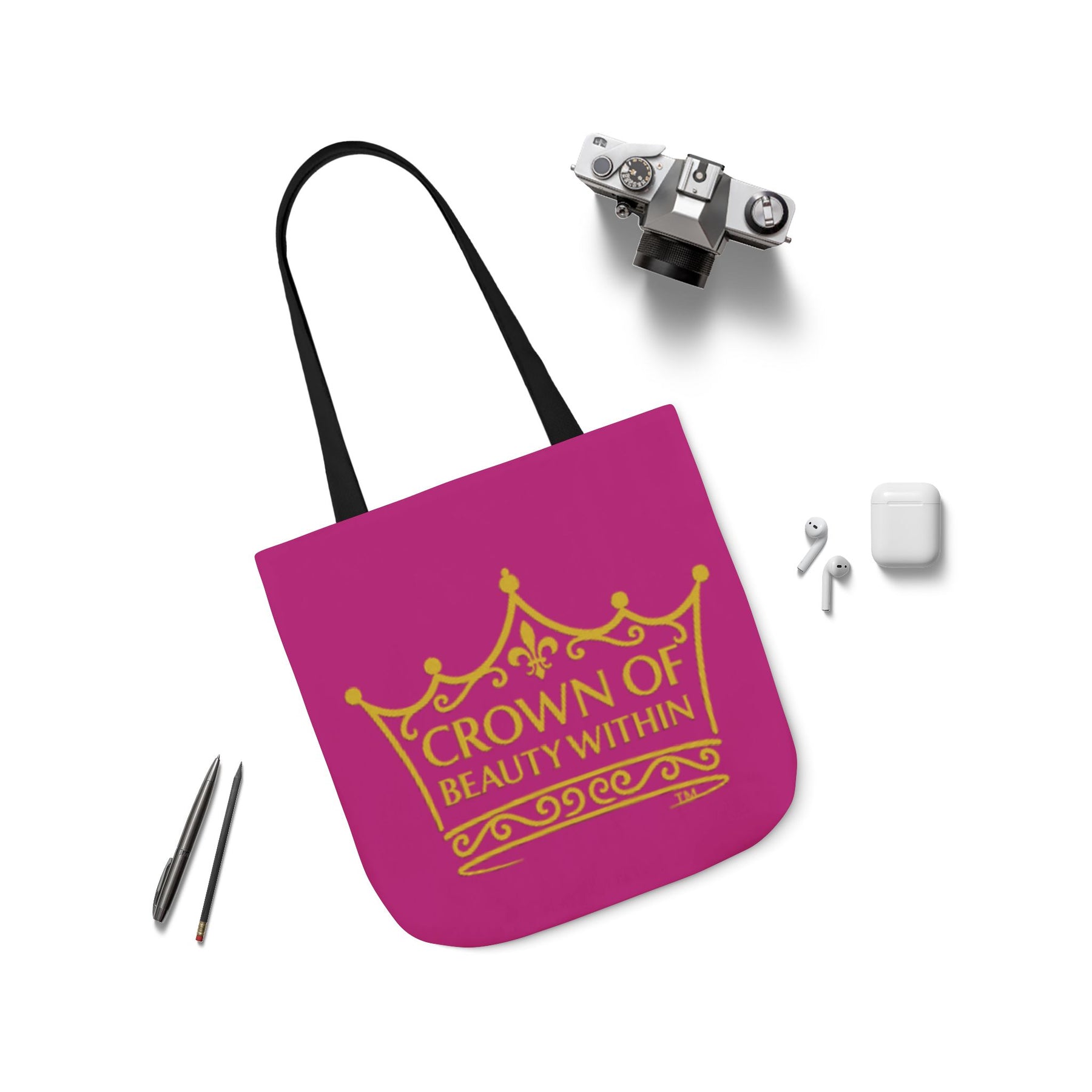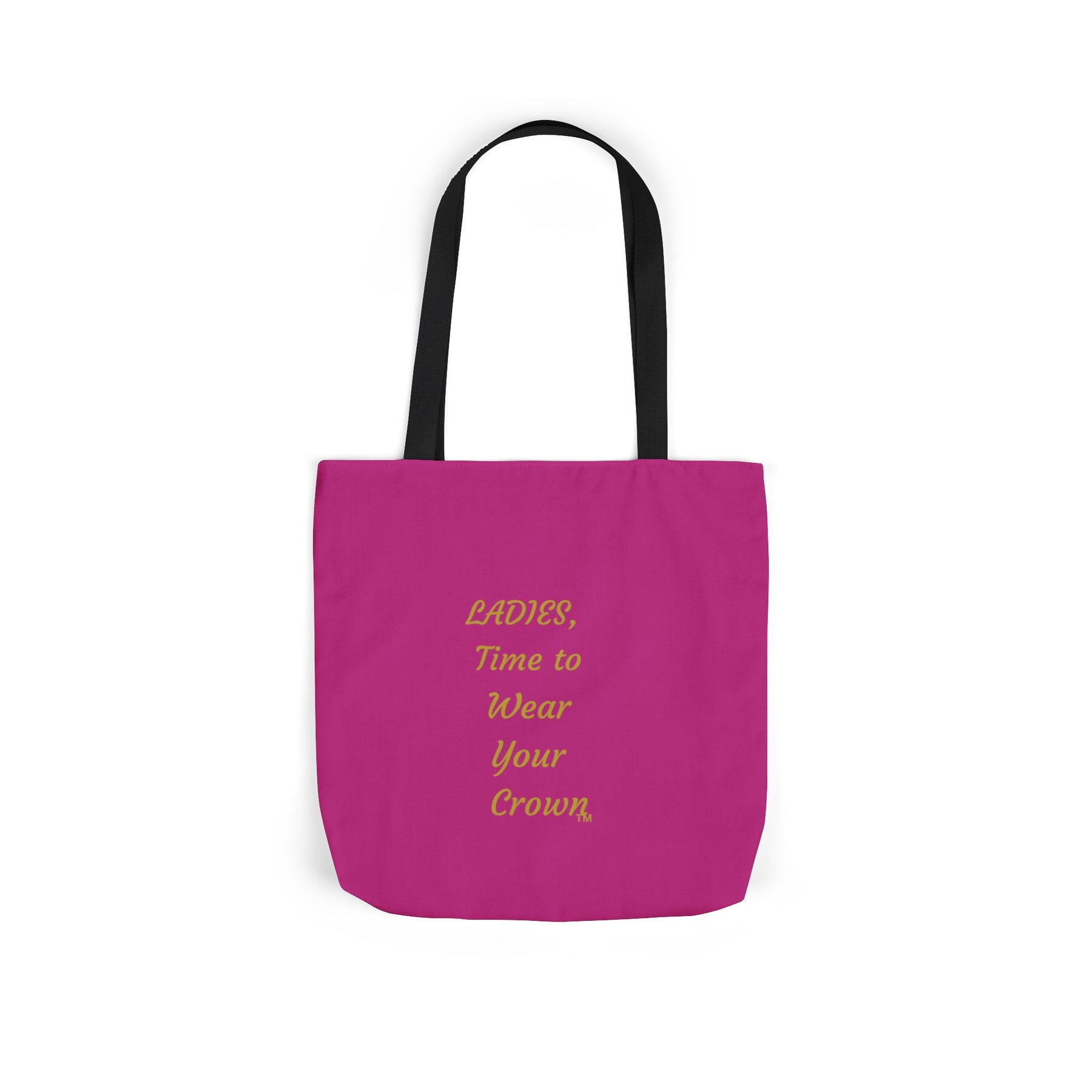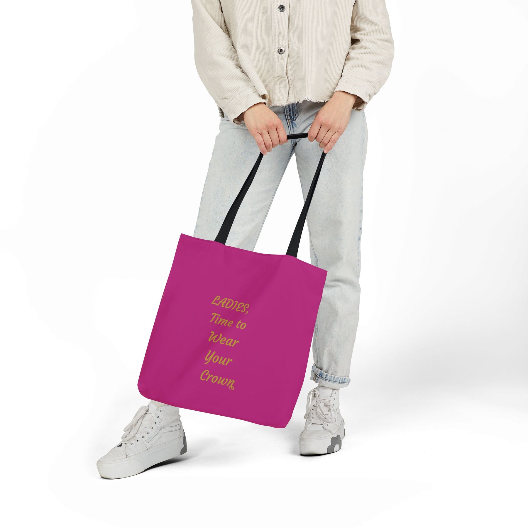 Add a bold statement to your daily errands, outings, or gifting moments with our Signature Crown Pink Tote Bag—featuring the iconic "Crown of Beauty Within™" design on the front and the empowering phrase “Ladies, Time to Wear Your Crown™” on the back.