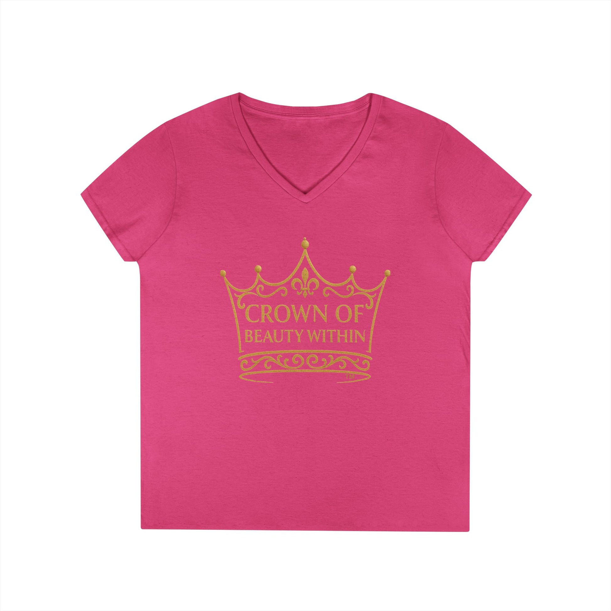 Signature Crown of Beauty Within™ | V-Neck T-Shirt | Empowerment Tee | Self-Love Shirt